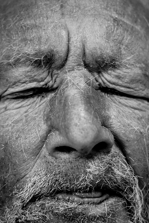 This portrait series is a project about identity. Homeless people getting their hair cut. Feeling special for a short period of time - being part of society. The cut hair as a symbol of freedom, loosing ballast.